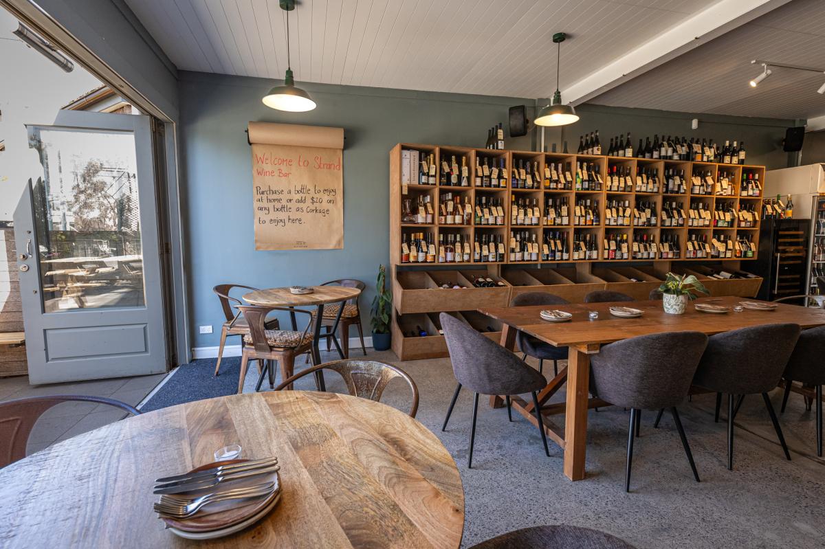 Setting up shop on The Strand, just behind Hurstmere Road and a short stroll from the beach, Strand Wine Bar brings fresh energy and a fun vibe to Takapuna. The concept is simple but clever, combining on- and off-licenses so guests can enjoy a glass of something interesting, choose a bottle from the shelves to drink in, or simply take one home.
