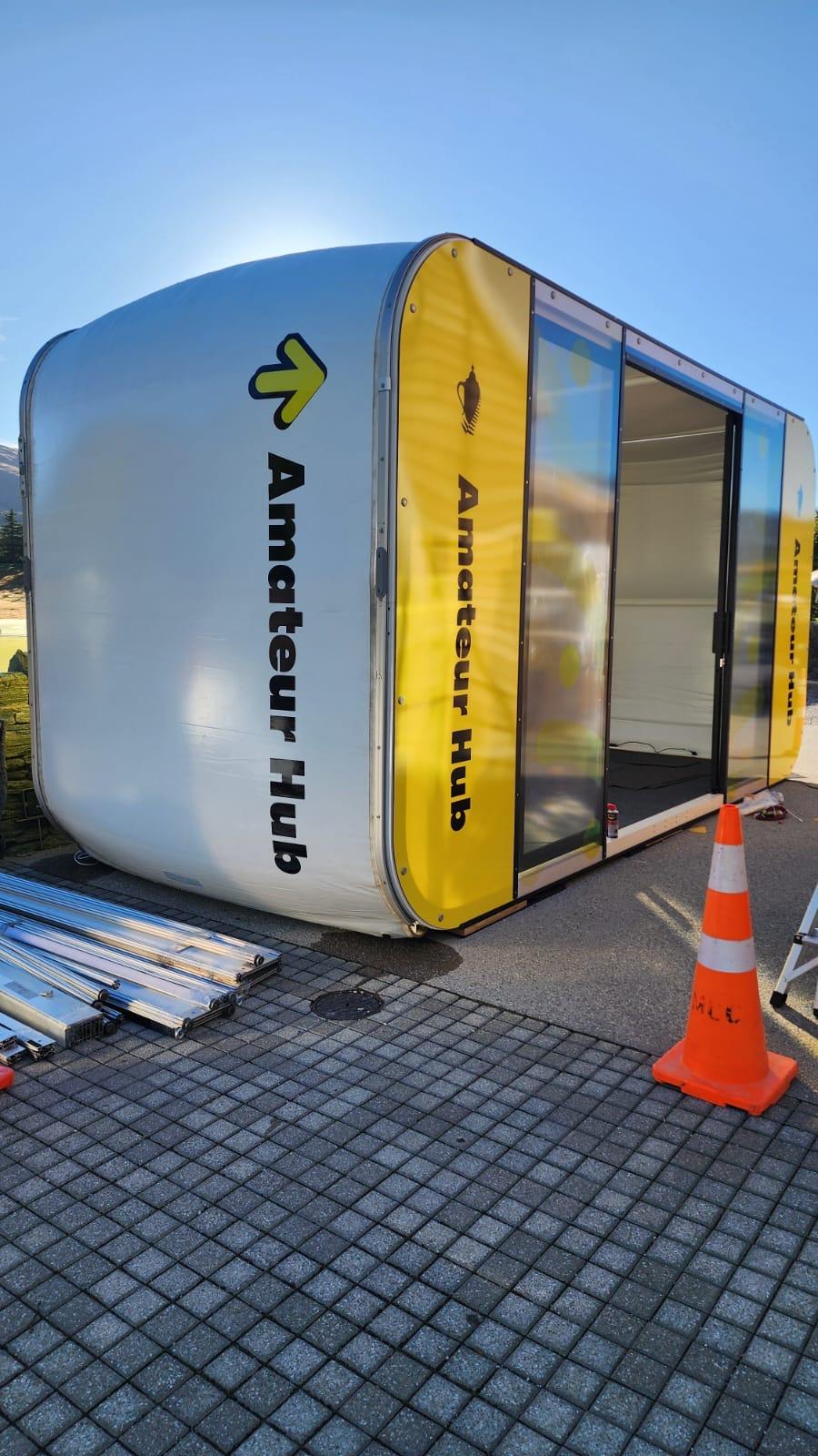 “Being able to manufacture and install is a big advantage,” adds Blake. “Being able to print banners to five metres wide is one prime example. This means fewer joins, or no joins, which is much more efficient and results in a better end product. Our fabric printing and finishing capability is another example. We produced lots of walls and backdrops as well as covers for the temporary grandstand seats. These looked great.