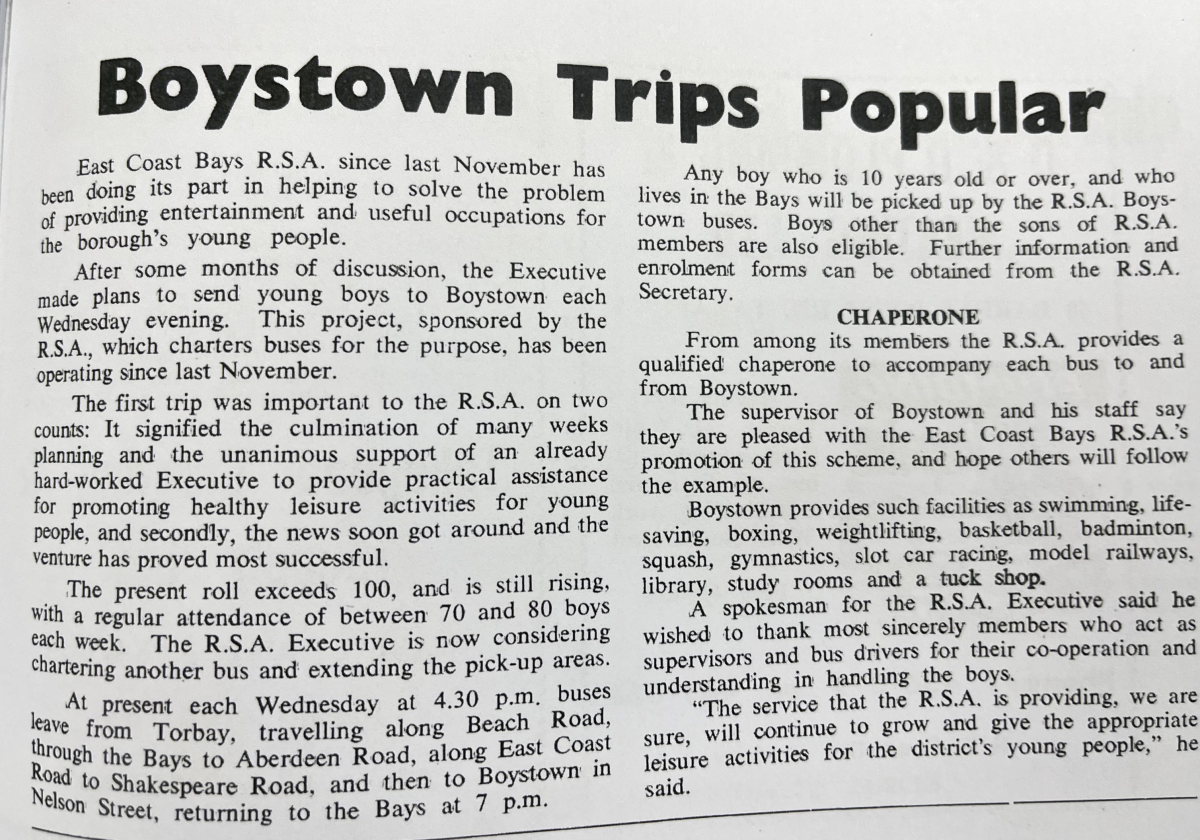 Even though it may be surprising that Browns Bay and its small population had such an early RSA, it was the focal point of the East Coast Bays community.